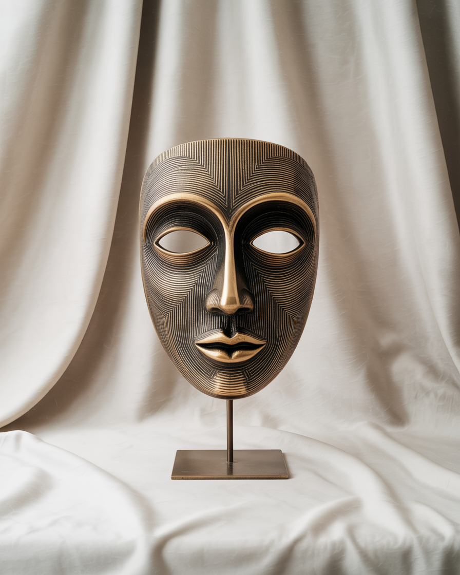 The Mask Mathi decorative figurine adds an artistic and mysterious character to your space. Standing 41 cm tall, this bronze-finished piece features an abstract mask design that draws attention with its bold yet elegant form.